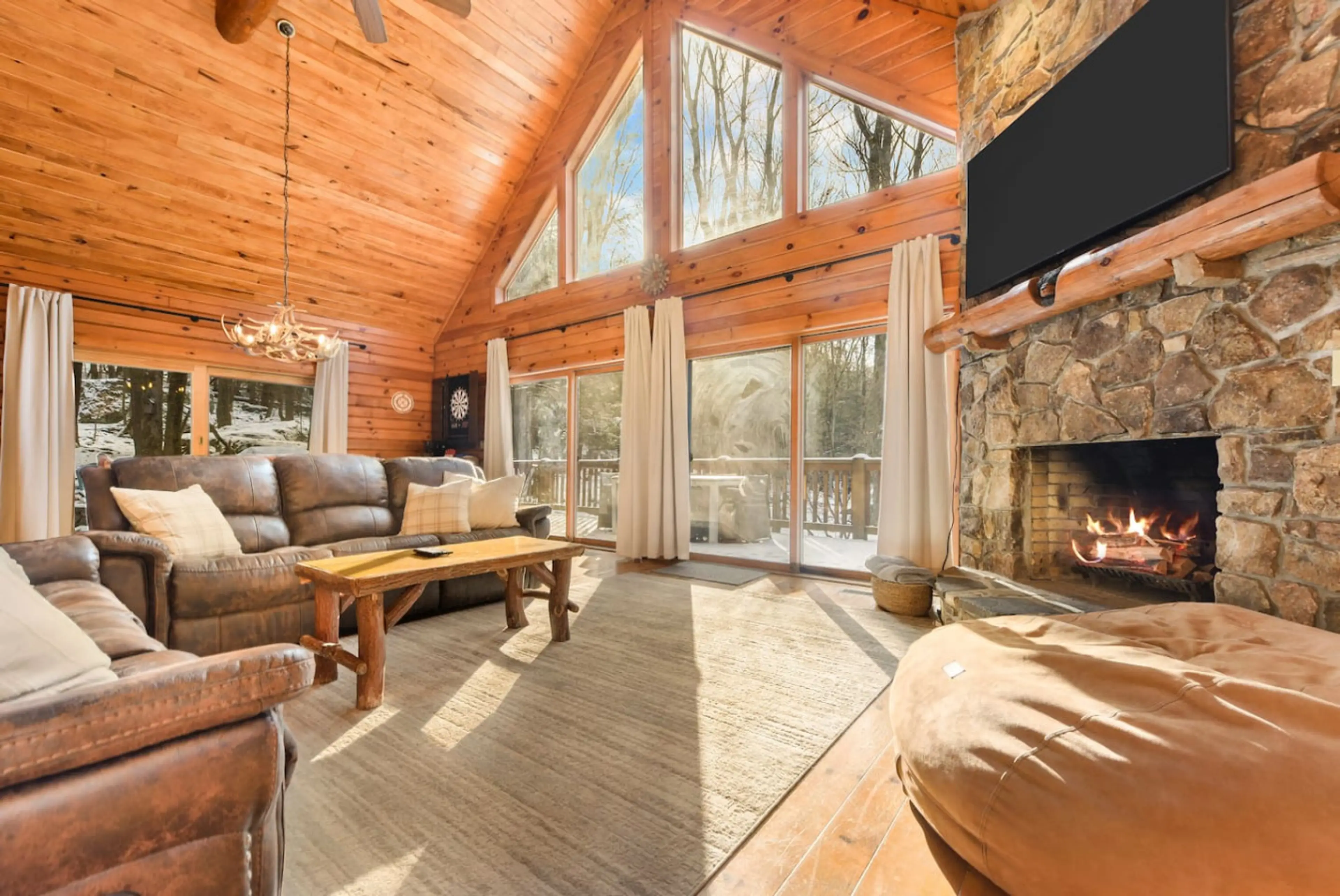 Jamesons Cabin: Spacious and pet-friendly, 8 mins from Wisp Resort - Sleeps 12 with 3 bedrooms + loft (4th bedroom), and a full sofa bed. - 75 inch tv over a cozy wood burning fireplace - Hot tub with a bar! - 4-player arcade, karaoke, and darts for entertainment - Putterball golf to show off your ...