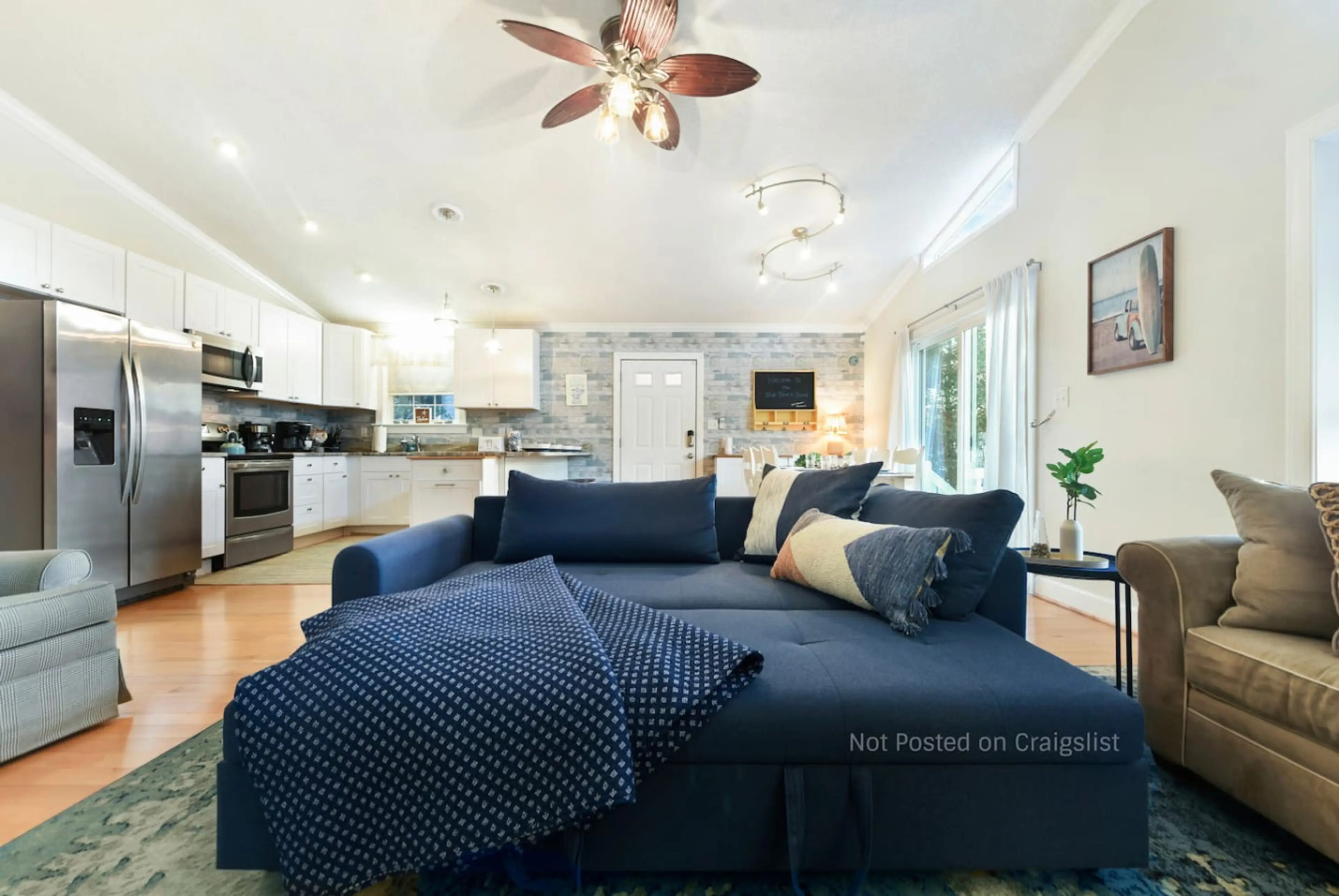 Escape to the Blue House, a pet-friendly retreat just 6-mins to the beach. - Full kitchen and charcoal grill - Coffee bar (k-cups, espresso, coffee grinder, french press, and pour over) - Fully fenced patio with a fire pit and ping pong - Outdoor shower - 5 Bikes - Northside Park - 2 min walk awa...